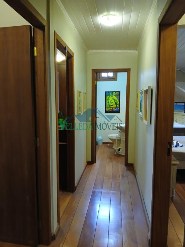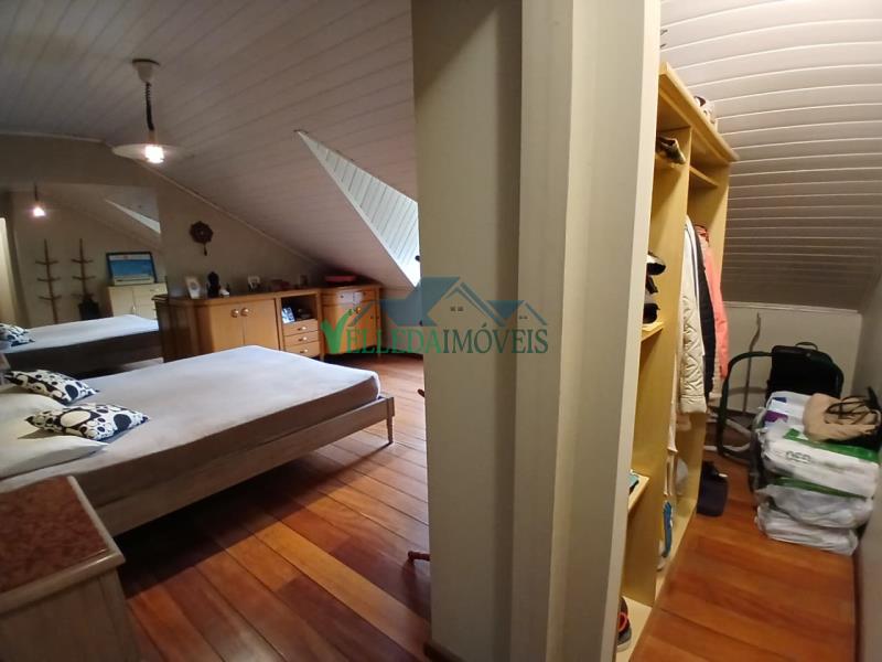 No piso superior, o destaque vai para o quarto de casal com closet, dois quartos de solteiro, um lavabo e uma ampla sala em mezanino, perfeita para convívio familiar ou leitura. Os assoalhos e escada são em madeira de grápia tratada, agregando beleza e durabilidade ao acabamento.