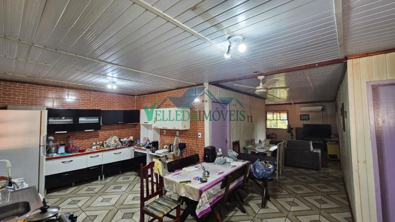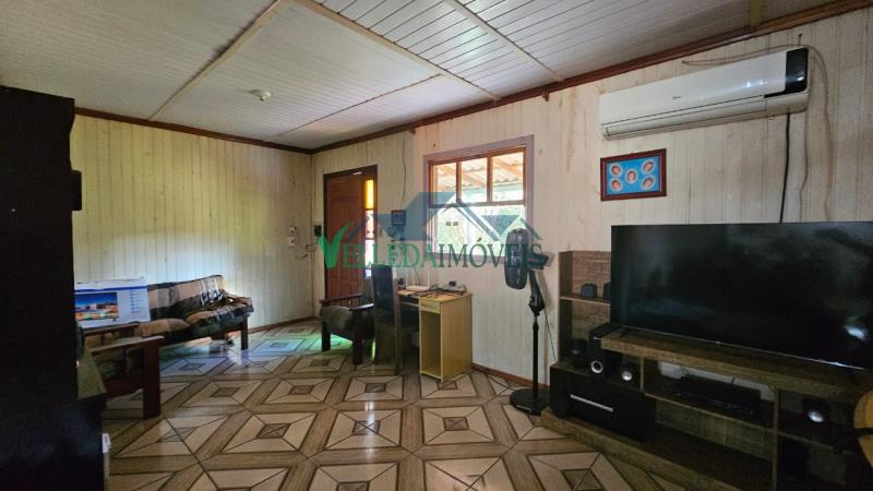 O imóvel conta com casa de 3 dormitórios, 1 banheiro social, sala de estar acolhedora, cozinha funcional e uma ampla varanda, perfeita para momentos de lazer em família. A residência ainda dispõe de churrasqueira e um galpão, proporcionando praticidade e conforto no dia a dia.
