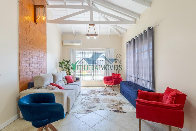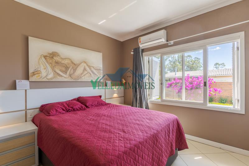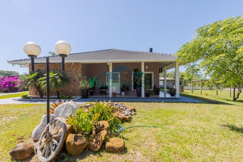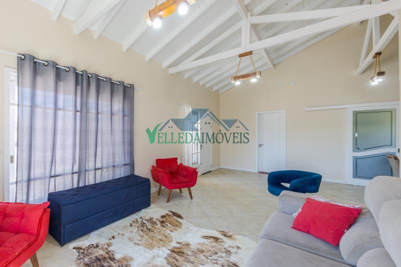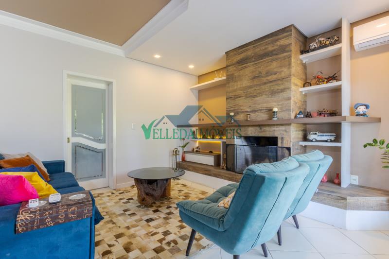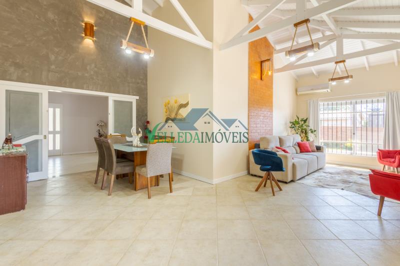 A casa possui pé-direito alto, excelente padrão construtivo e ambientes amplos e bem distribuídos. São 2 dormitórios, 2 banheiros, sendo um deles com banheira de hidromassagem, duas salas de estar amplas, uma delas com lareira, além de sala de jantar, cozinha, lavanderia e sistema de água quente.