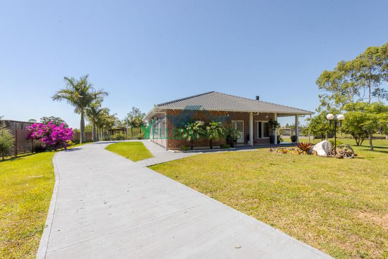 Trata-se de uma casa de alvenaria com laje (chapa), totalmente reformada e averbada, apta a financiamento bancário. O imóvel está situado em uma área plana de aproximadamente 4.000m², cuidadosamente ornamentada, com integração perfeita entre jardim, açude e construção.
