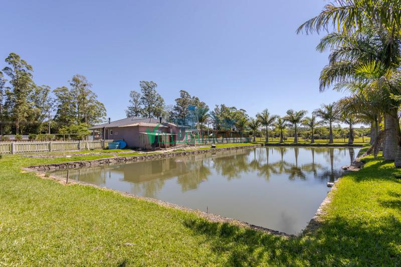 Na área externa, o imóvel se destaca pelo açude de pedra, laguinho artificial, terreno totalmente plano e muito bem cuidado, além de um anexo em alvenaria utilizado como depósito para ferramentas, agregando praticidade à propriedade.