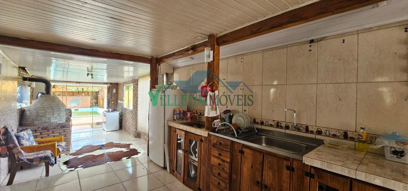 De 4 dormitórios (sendo um suíte), banheiro social, sala e ampla cozinha com fogão campeiro.
