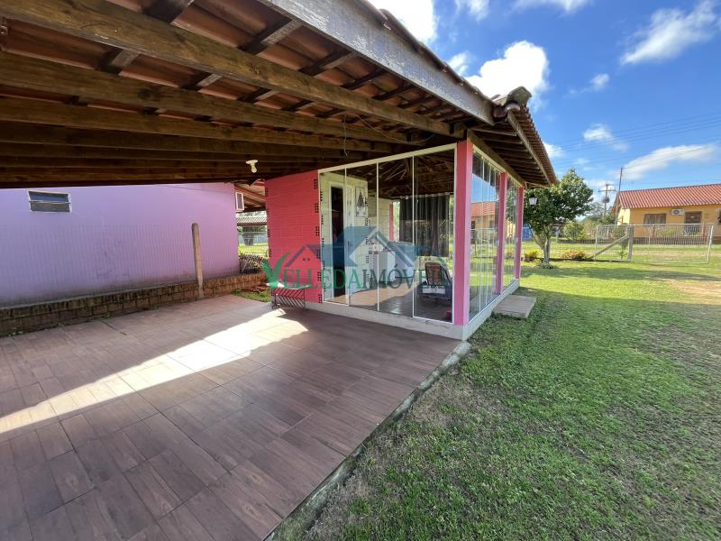 CÓDIGO DO IMÓVEL: 5638Casa nova, com menos de 5 anos de construção e pronta para morar, sem necessidade de reformas. Residência de alvenaria composta por 2 dormitórios, sala e cozinha gourmet integradas, banheiro social, área de serviço, despensa para ferramentas e salão de festas envidraçado, ideal para receber amigos e familiares. Conta com um amplo e belíssimo pátio, perfeito para quem busca espaço e conforto.