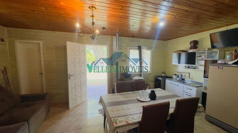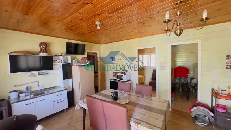 A casa é em estilo chalé, com boa estrutura e ambientes bem distribuídos, composta por três dormitórios, banheiro social, sala de estar e cozinha, atendendo perfeitamente tanto para moradia quanto para lazer.